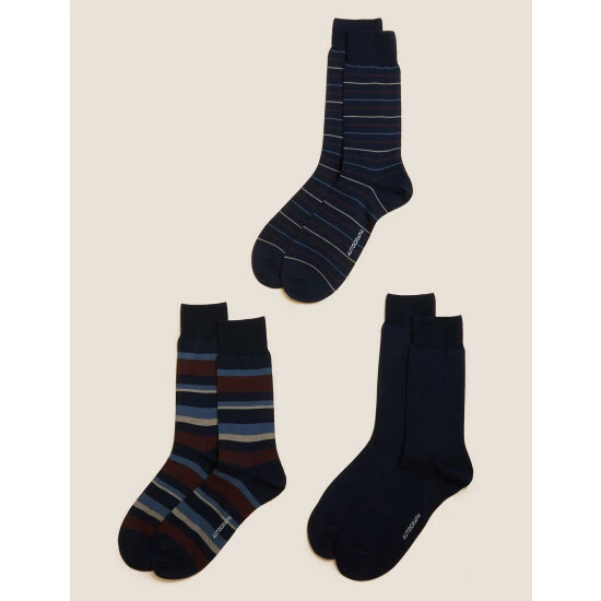 Add some pattern to your essentials with these smart Autograph socks, made from a premium cotton-modal blend fabric. The pack of three includes one plain and two striped pairs, all finished with branding at the side of the sole. Made with responsibly sourced Tencel™ modal. Autograph: premium investment pieces featuring contemporary cuts and refined finishing touches.