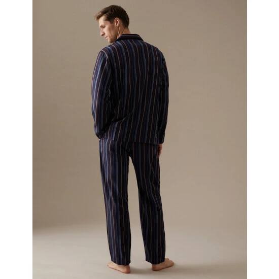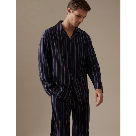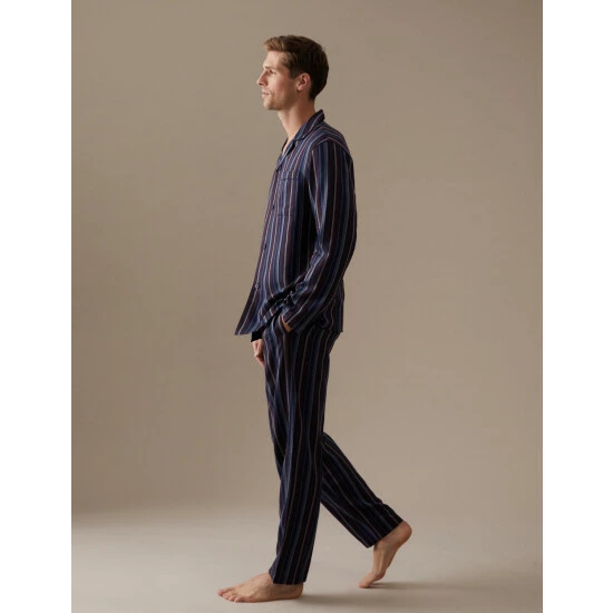 Upgrade your nightwear drawer with these cotton-rich striped pyjamas from our Autograph collection. Made to a comfortable regular fit. Button-down top has a chest pocket while the elasticated bottoms have side pockets and a handy button fly. We only ever use responsibly sourced cotton for our clothes. Made with responsibly sourced Tencel™ lyocell. Autograph: premium investment pieces featuring contemporary cuts and refined finishing touches.