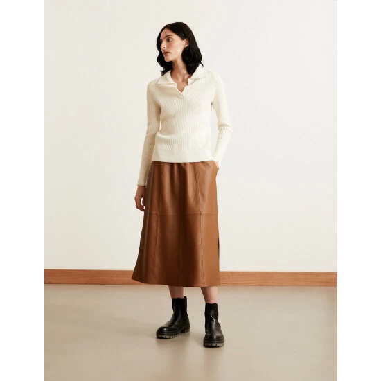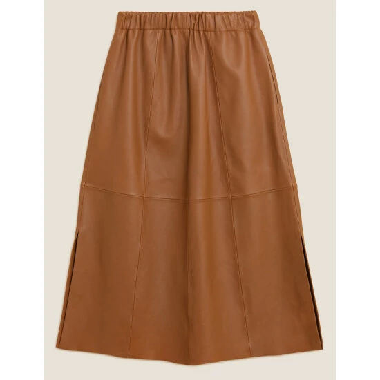 Add some elegance to your everyday with this soft leather skirt from our Autograph collection. The design is cut to a straight fit and has a flattering midaxi length. A pull-on elasticated waist ensures comfort. It’s finished with sophisticated side splits and handy side pockets. Autograph: premium investment pieces featuring contemporary cuts and refined finishing touches.