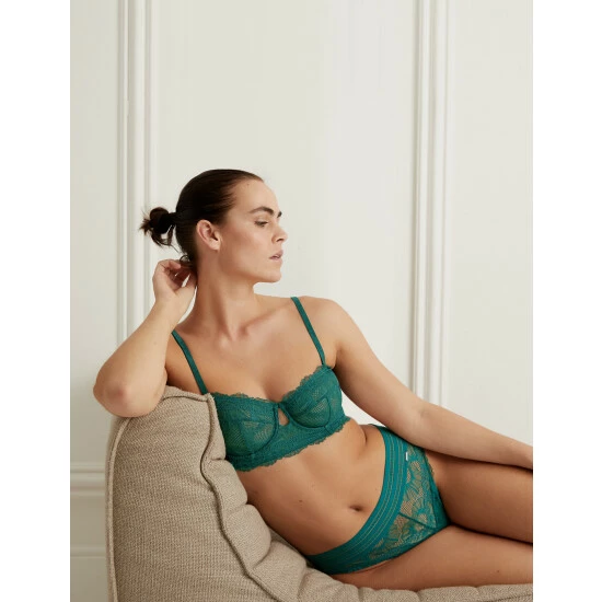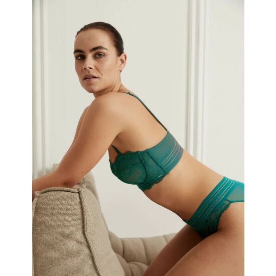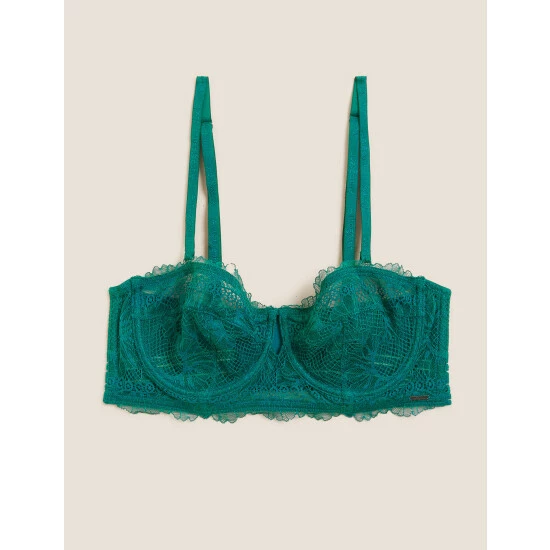 This Marseille bustier from our Autograph collection can be worn in a strapless style for discreet support under outfits. Its underwired cups give great uplift, while the fan-inspired motif of the lace overlays ensures a feminine feel. Ladder-lace trims to the back straps and branded metallic hardware complete the look. Autograph: refined fabrics and modern silhouettes for an effortless, understated style.