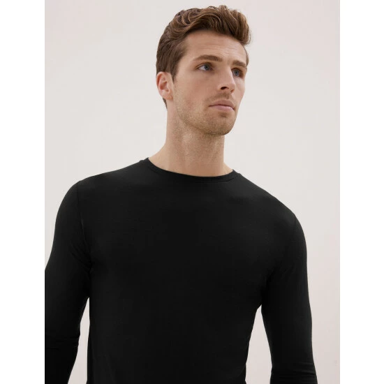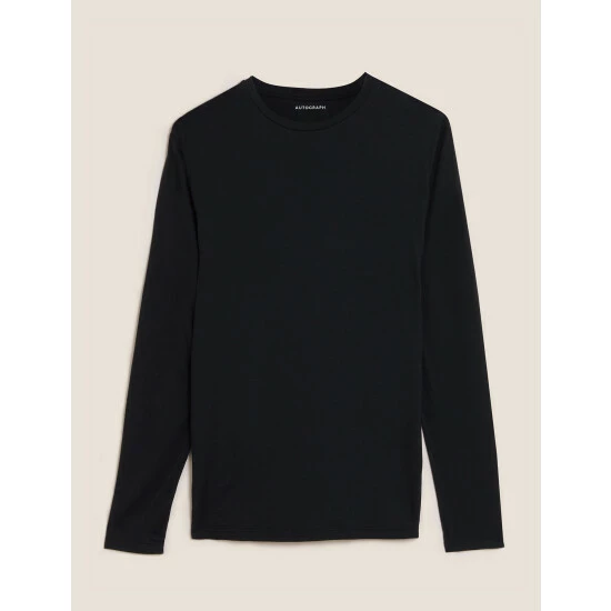 This thermal Autograph top is crafted from a brushed back Merino wool-blend for an ultra-cosy feel. Long-sleeved style in a regular fit, with stretchy Lycra® for improved comfort. Offers light warmth. Made with responsibly sourced Tencel™ lyocell. Autograph: premium investment pieces featuring contemporary cuts and refined finishing touches.