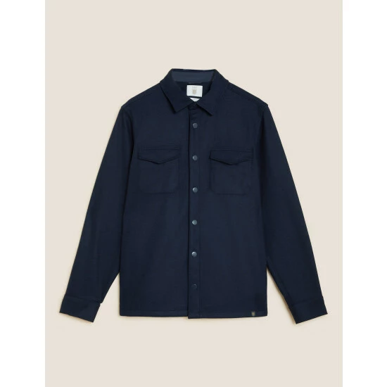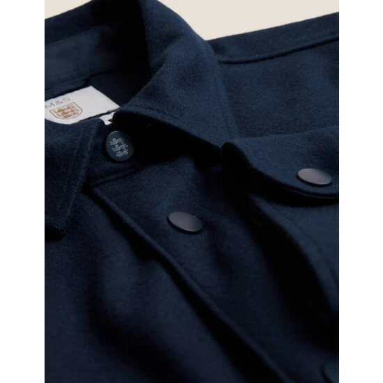 Part of M&S X ENGLAND, this overshirt is crafted with a touch of wool in the fabric for a luxurious feel. Long sleeves and popper fastenings make it ideal for layering, while patch pockets give a practical touch. To finish the look, you’ll find the Three Lions crest at the hem. Made with recycled polyester.