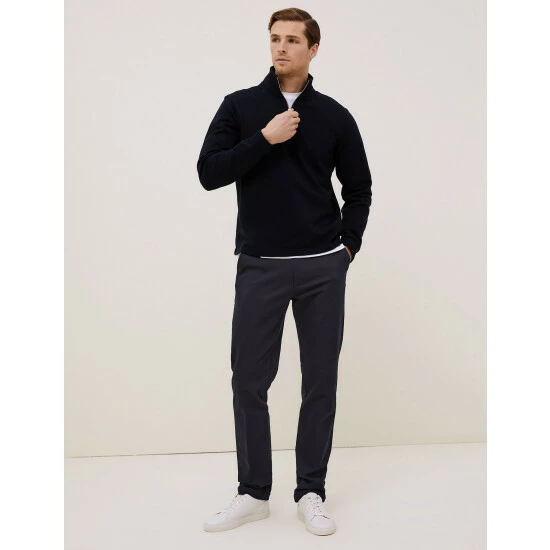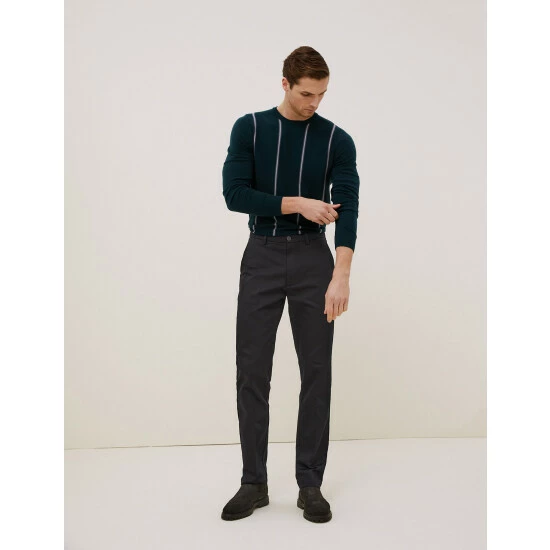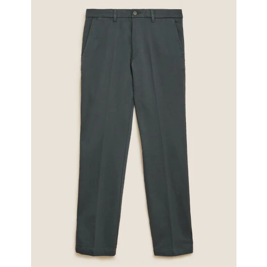 These cotton-rich chinos made from luxurious fabric from Italy are a versatile style that’ll slot effortlessly into your wardrobe. Regular fit, with a touch of added stretch for comfortable wear. Zip fastening, plus a heat-fused button that won’t fall off, thanks to our Buttonsafe™ technology. Finished with two pockets. We only ever use responsibly sourced cotton for our clothes.