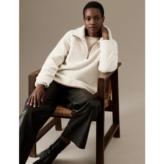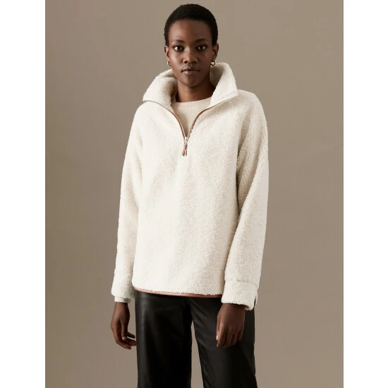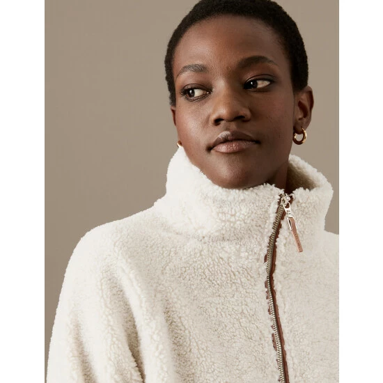 Textured borg fabric gives this sweatshirt from our Autograph collection a cosy feel. It has a regular fit, with long sleeves and a full lining for a smooth effect. A zip-up fastening creates an adjustable high neck to lock in heat on chilly days. Autograph: premium investment pieces featuring contemporary cuts and refined finishing touches.
