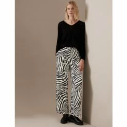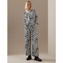 Autograph Animal Print V-Neck Long Sleeve Blouse Women Black Mix