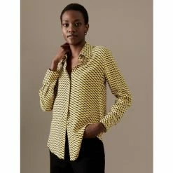 Autograph Chain Print Collared Long Sleeve Shirt Women Gold Mix