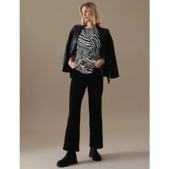 Autograph Animal Print Plisse 3/4 Sleeve Blouse Women Black Mix