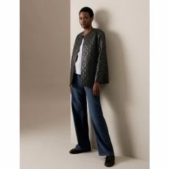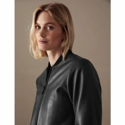 Autograph Leather Quilted Collarless Bomber Jacket Women Black