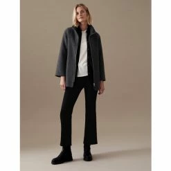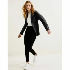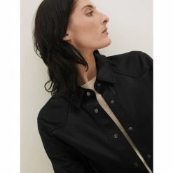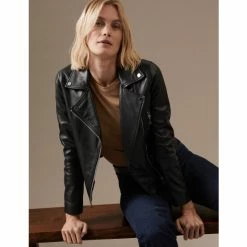 Autograph Leather Belted Collarless Longline Jacket Women Black