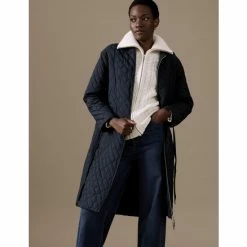Autograph Quilted Hooded Belted Longline Raincoat Women Navy