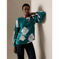 Autograph Cupro Rich Printed Blouson Sleeve Blouse Women Green Mix